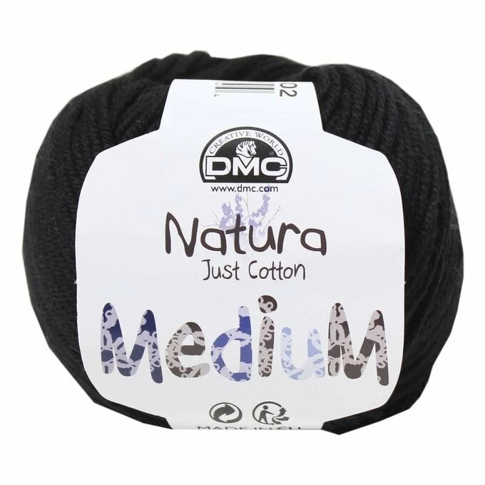 DMC 02 Black Natura Medium Crochet Yarn 50g