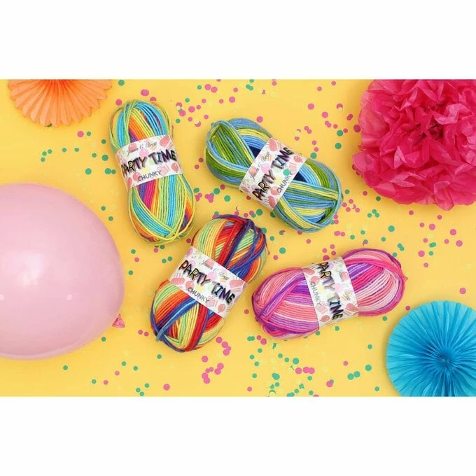 James C Brett Party Time Chunky Yarn is the perfect way to brighten up your wardrobe, with brilliant, playful shades that everyone will love! The 100% acrylic is a practical choice that will turn your knitting and crochet projects into your very own playtime.