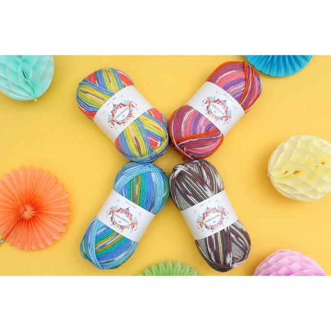 Add vibrant colour to your knitted designs with James C Brett Fairground DK Yarn! This dazzling double knitting yarn will help you create a wide range of projects, offering fun, eye-catching shades to your wardrobe. This yarn features variegated colour, helping you knit up stunning patterns effortlessly.