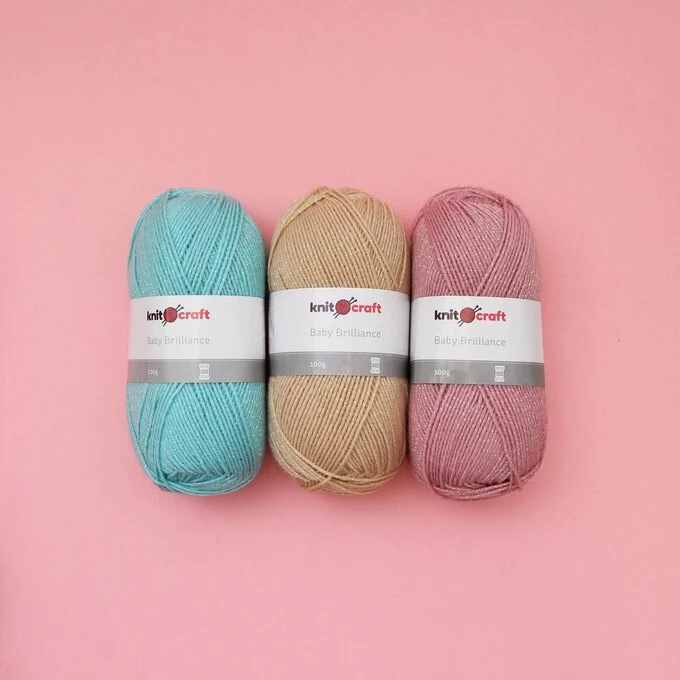 Add sparkling colour to your designs with our Baby Brilliance DK Yarn. This stunning yarn features specks of glitter throughout, adding a lovely shimmering touch to your designs.