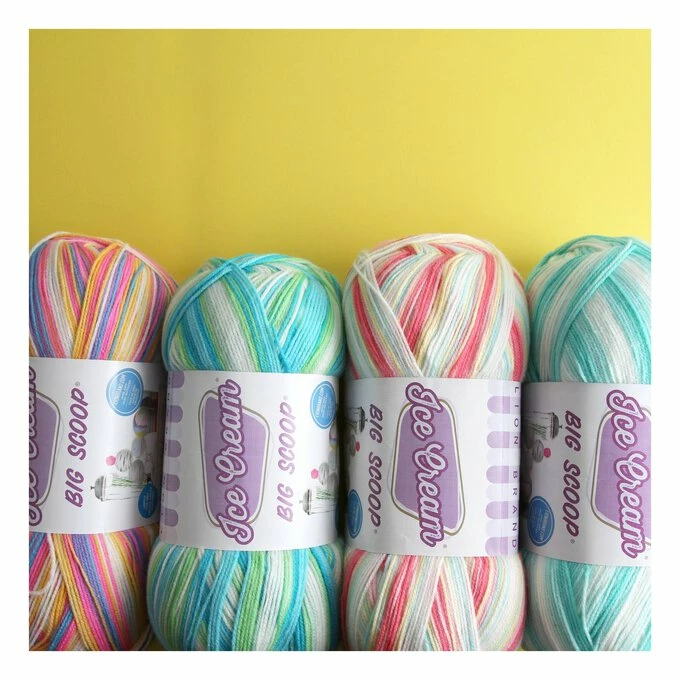 Lion Brand Ice Cream Big Scoop Yarn brings you the perfect soft and easy-care yarn to stitch beautiful baby knits or even a cosy blanket! With colourways inspired by all things ice cream, you wonβt be able to resist this collection.