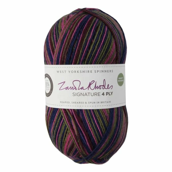West Yorkshire Spinners Zandra Rhodes Signature 4 Ply is the perfect choice yarn for creating wearable pieces of art in bold, bright shades. This yarn features the West Yorkshire Spinners Signature 4ply in collaboration with the legendary Zandra Rhodes.